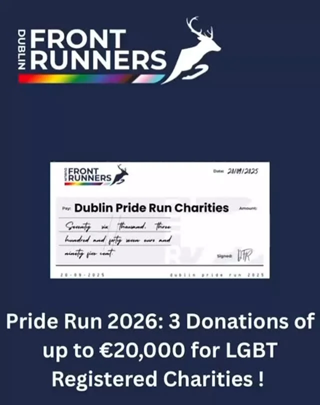 The Dublin Front Runners is one of more than 120 clubs who make up the worldwide International Front Runners network, a global organisation of LGBTQ+ running clubs. The International Front Runners were established in 1981 with the founding of the San Francisco Front Runners, the first LGBTQ+ running club in the world.